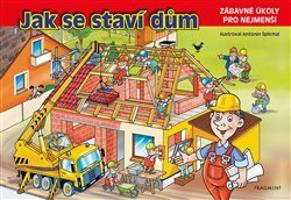 Leporelo s obrázky a jednoduchými úkoly o tom, jak se staví dům.